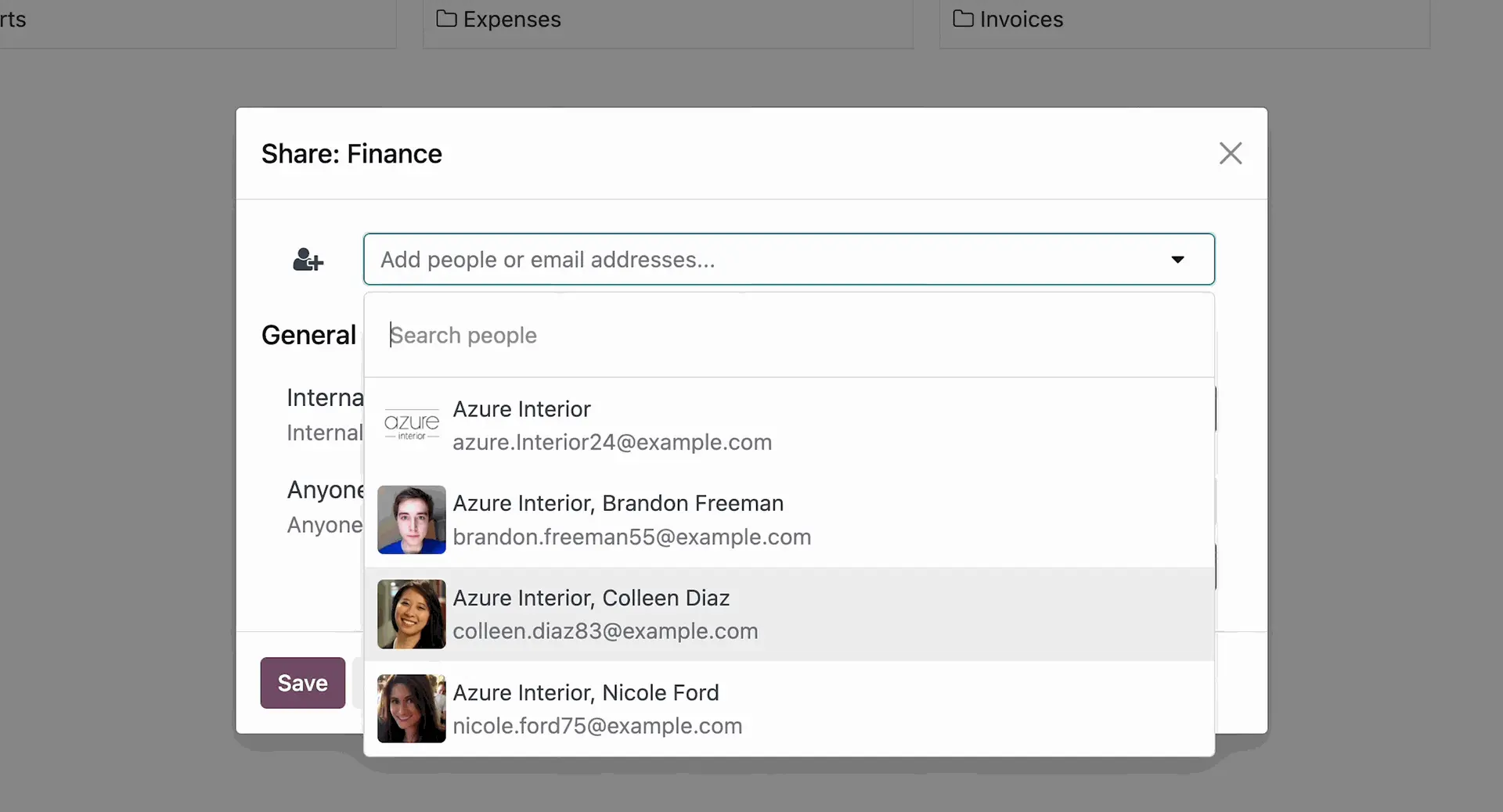 Share documents or folders with internal users or external guests—set roles, expiration dates, and permissions.